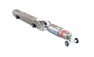 YG-100 系列X射線管道爬行器是我公司研發(fā)的具有自主知識產權的長距離管道檢測設備。設備采用優(yōu)質不銹鋼外殼,優(yōu)異的曝光控制電路設計,升壓和斬波電路采用IGBT功率模塊,供電效率更高,西門子PLC程序控制,性能更加穩(wěn)定。輸入數(shù)據(jù)采用觸摸屏人機對話方式(或APP遠程操作),使用更便捷。采用磁信號定位控制,定位精度可達±3mm。具有優(yōu)秀的自檢保護功能、標準的X射線發(fā)生器(機頭),適設備的通用性更強,恒功率輸出(不受電池電壓波動影響)、圖像黑度均勻。四輪驅動,爬坡能力強。車身尺寸小,轉彎方便。